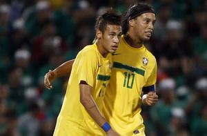 Goals by Ronaldinho and Marcelo in the last 11 minutes gave 10-man Brazil a 2-1 win over Mexico in a friendly in the northern city of Torreon on Tuesday.
